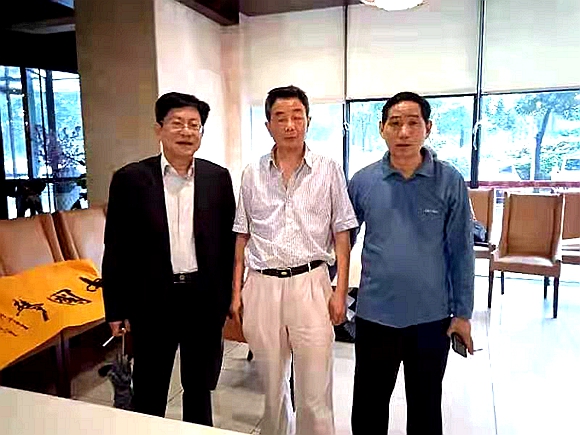 著名山水画家陈米杰老师携他创作的作品与省检察院原副检察长朱国祥先生合影