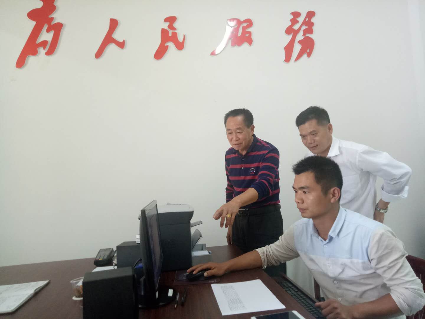 李启禄介绍村级政务网上办公。